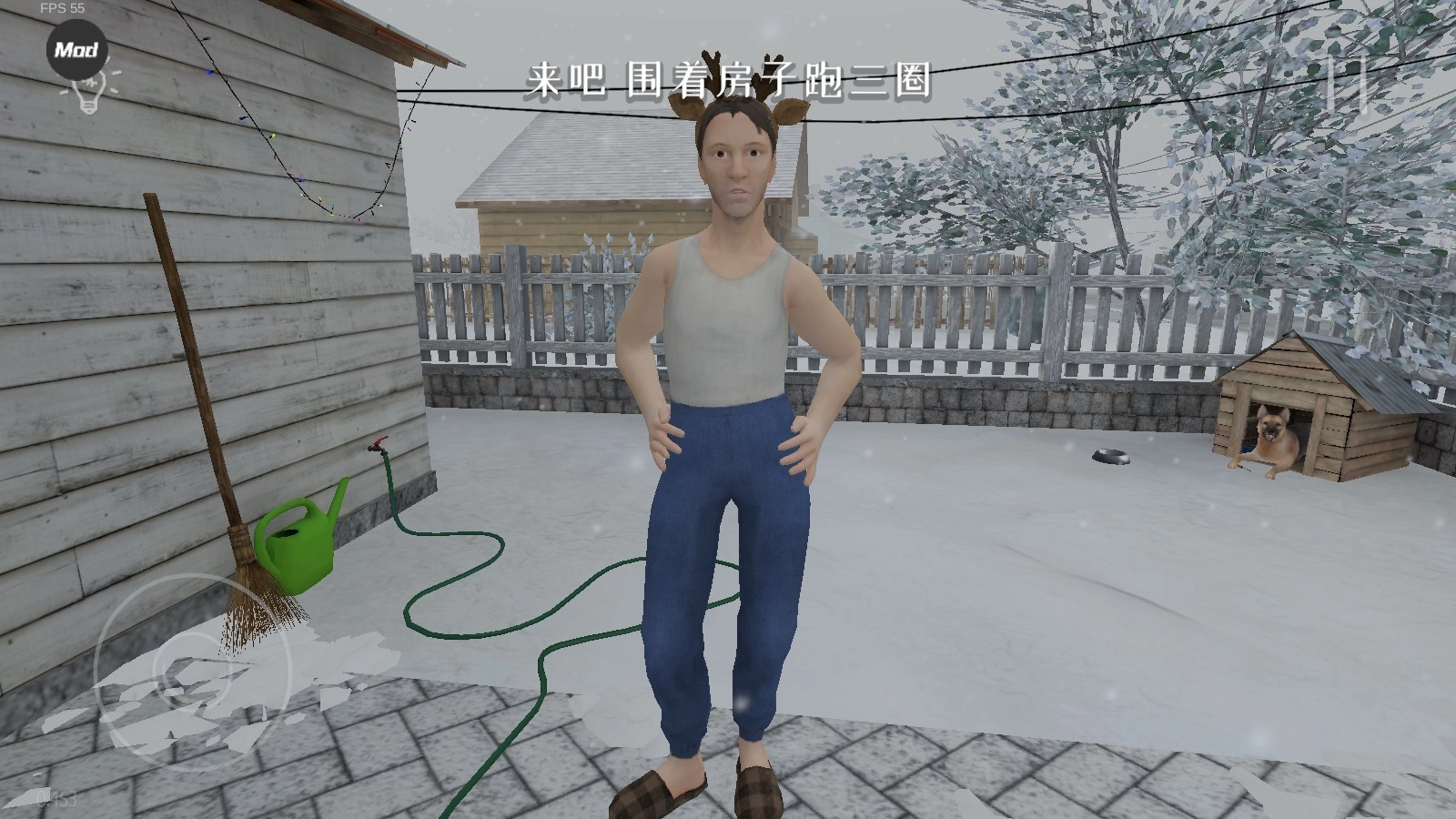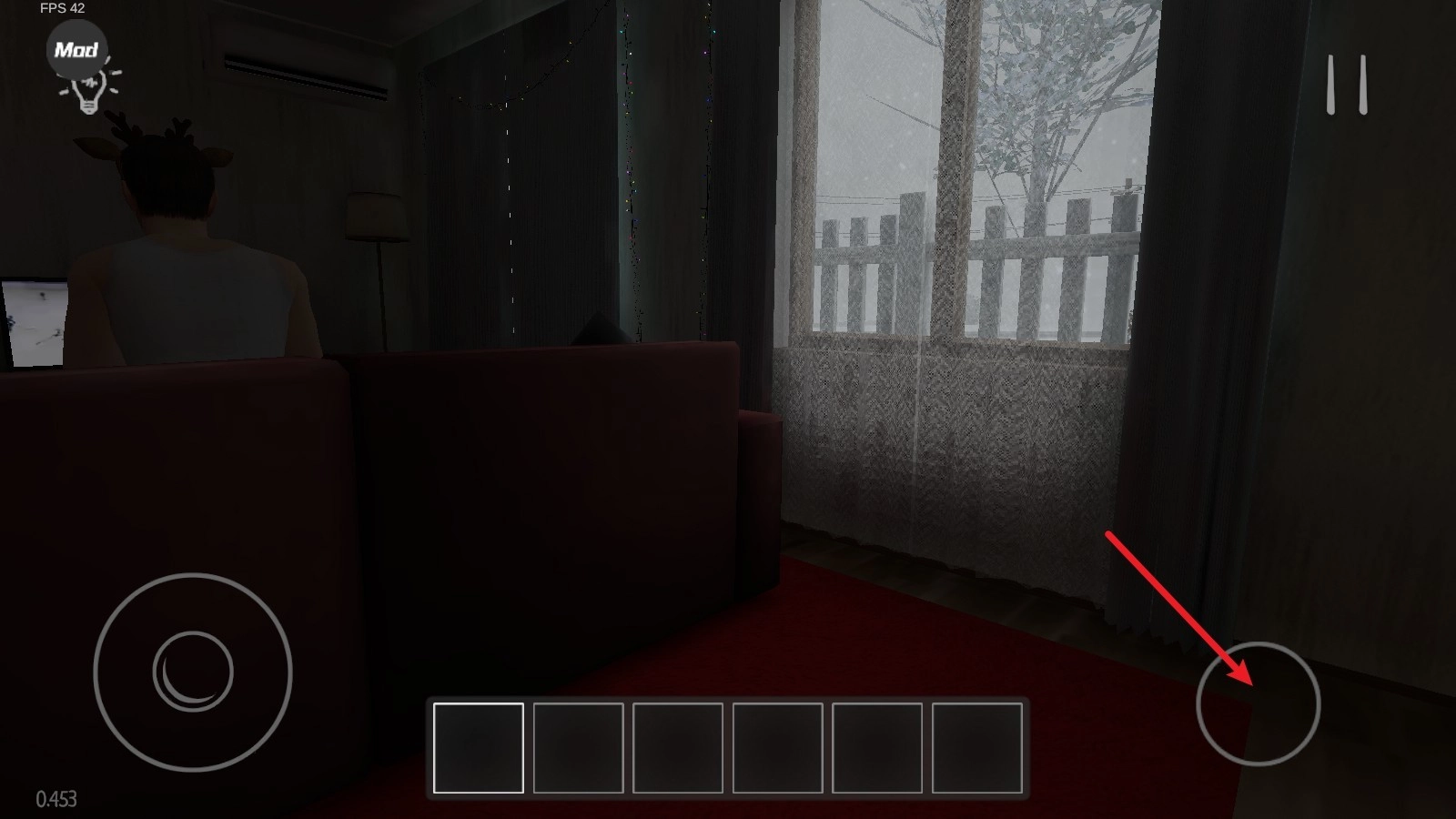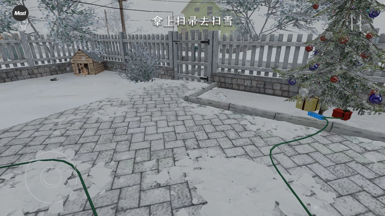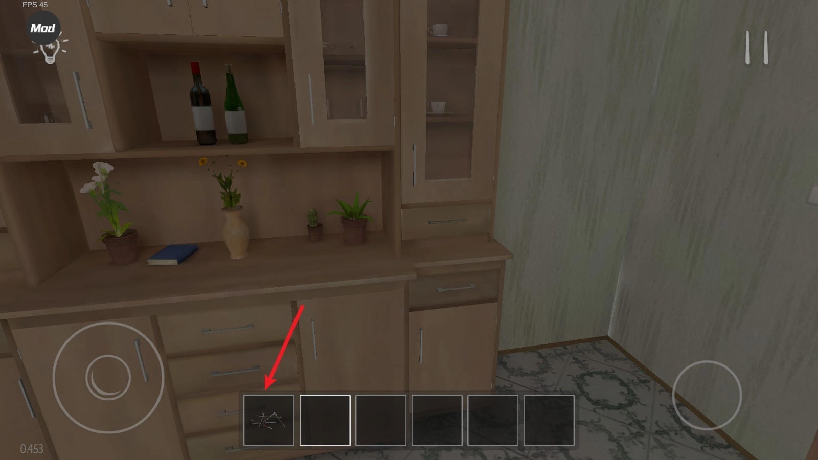 1. 游戏启动,玩家置身于房间之中,借助摇杆来实现移动操作,通过点击物品进行互动,例如开门、打开柜子等。