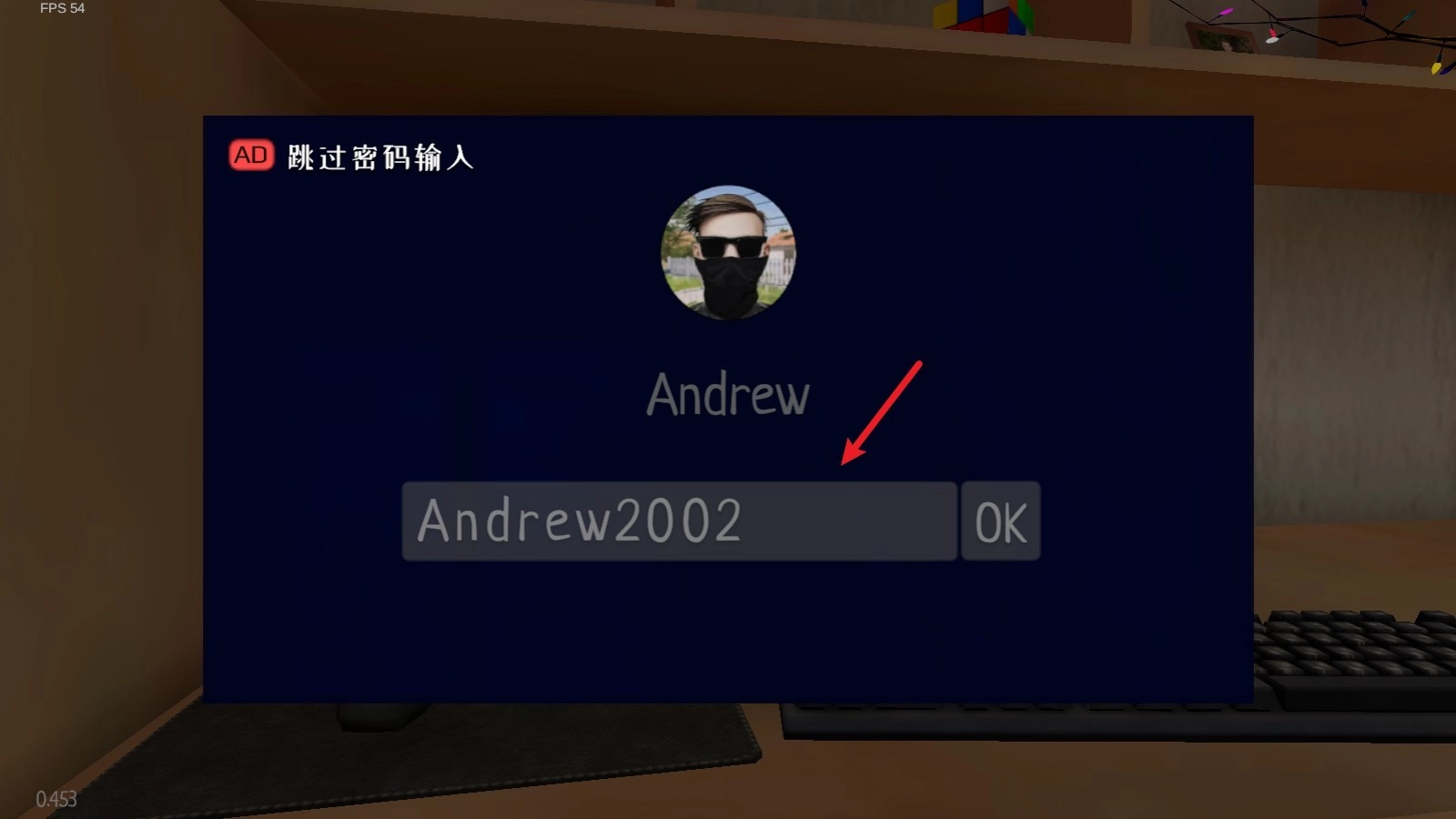 1、来到个人电脑前,键入密码“Andrew2002”登录系统。