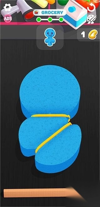 1. 开启海绵艺术游戏第一关,依照引导,用手指滑动海绵,便能使海绵挤压变形。