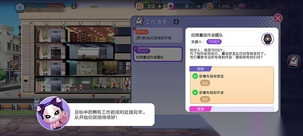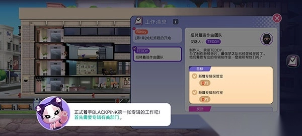 5、点击完成即可开始下一个工作——招聘最强作曲团队,正式着手BLACKPINK第一张专辑的工作,在这之前首先需要专辑有关部门。