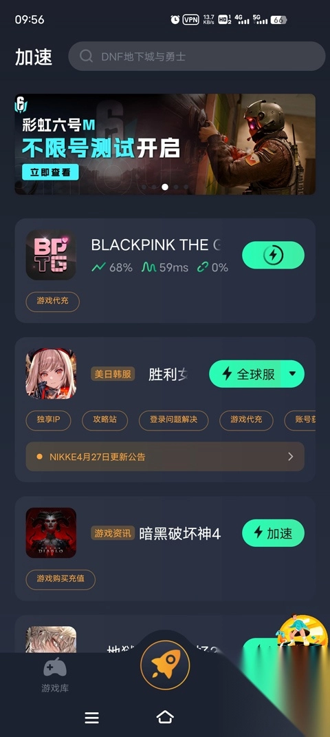 1. 开启BLACKPINK手游,该游戏需借助加速器方可启动。