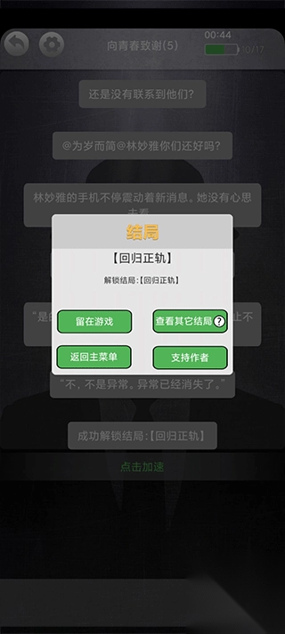 玩家成功找出关键线索,阻止异常现象扩散,林妙雅生活恢复如常。