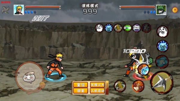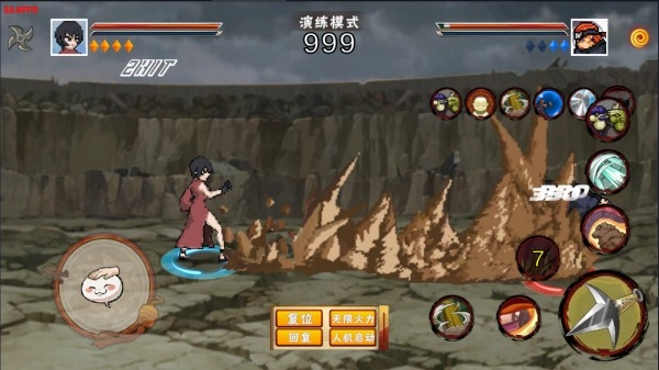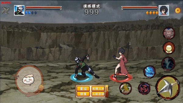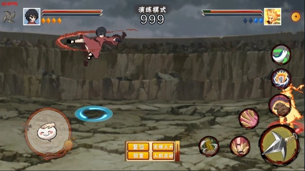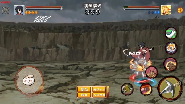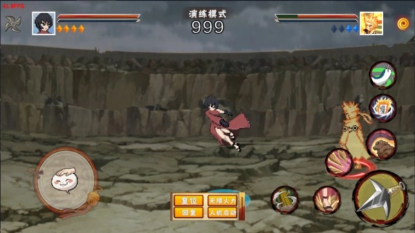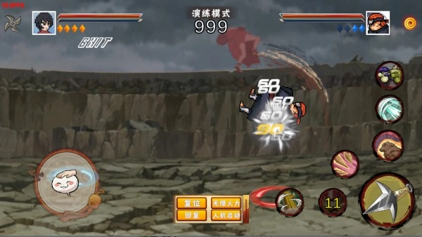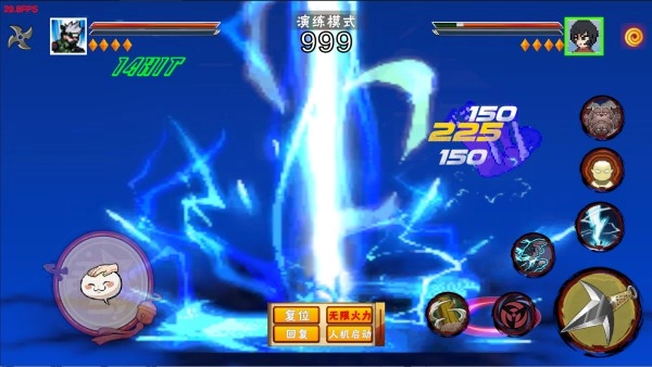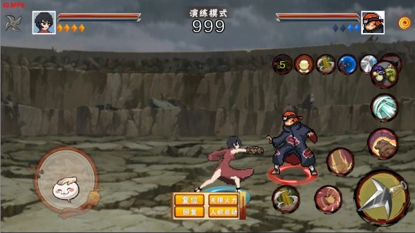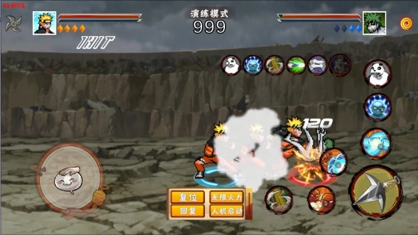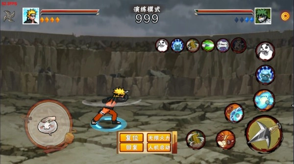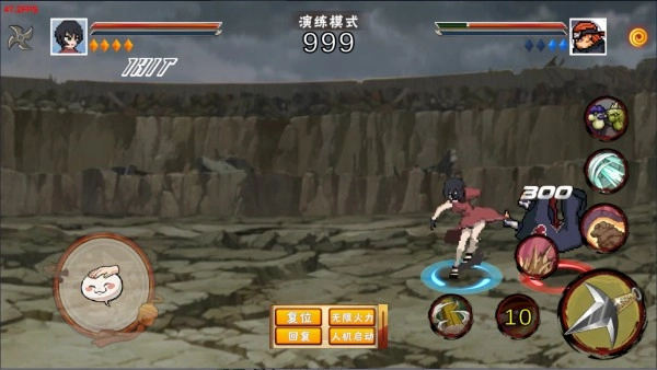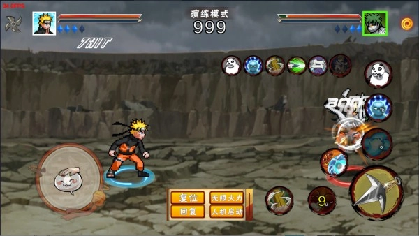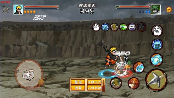 (3)、3-4a切换至水遁水龙弹,向前释放水龙弹击飞敌人,对比手游会减少击飞距离,方便衔接上普通攻击。