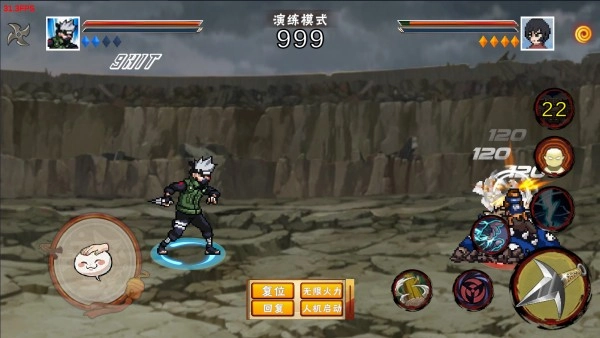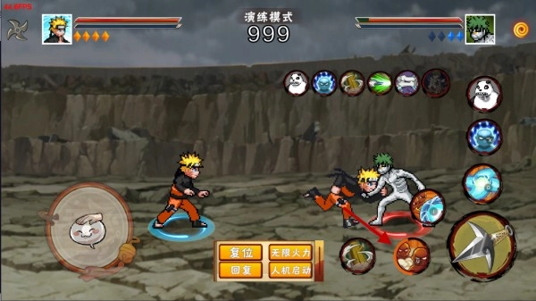 1、技能一【影分身之术】:共分为三段,可在每段的黄条结束前释放下一段。一段召唤分身向前挥拳攻击,二段召唤分身向上挥拳攻击,三段召唤分身飞踢。小技巧:每一段的分身释放都是可以通过摇杆控制,以达到错Y轴攻击的小效果。以下是三段表现效果。