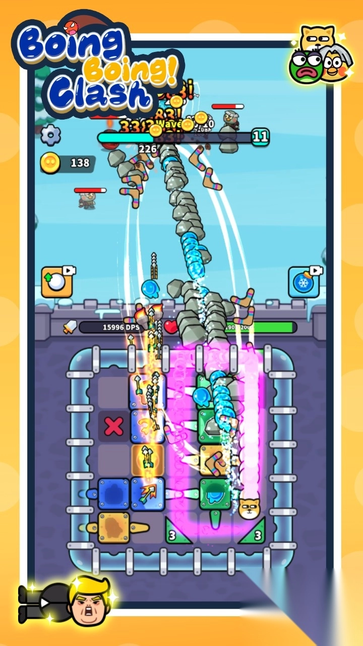 1. 玩家要在屏幕下方的格子里放置弹射板、加速带之类的道具,对武器弹射轨迹进行调整,让攻击经过多次反弹后能获取伤害加成。