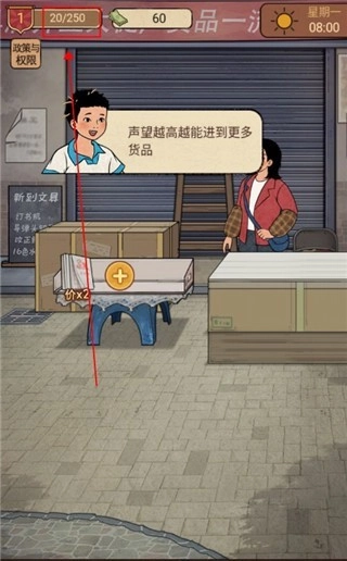 5、有了货架后就可以卖东西了,声望值越高可以卖的东西就越多