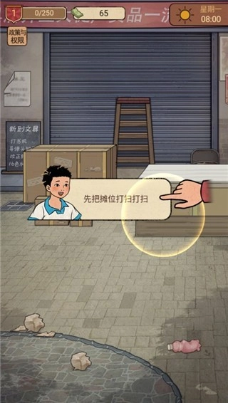 2、然后我们需要将摊位打扫一番,点击地上的垃圾即可