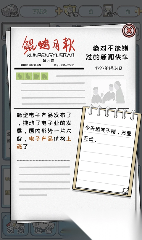 9、另外每天还会有日报提示哪些物品的上涨情况,可以帮助你早日成为首富。
