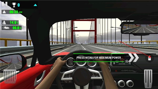 1、于本站下载并安装赛车限制游戏,安装完成后打开该游戏,进入游戏界面。游戏界面右侧设有按钮,此按钮为油门,点击它即可实现加速操作。