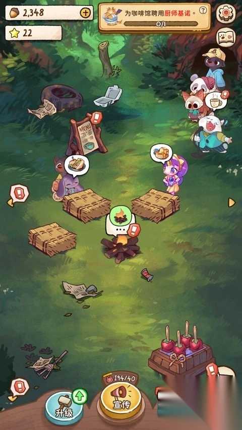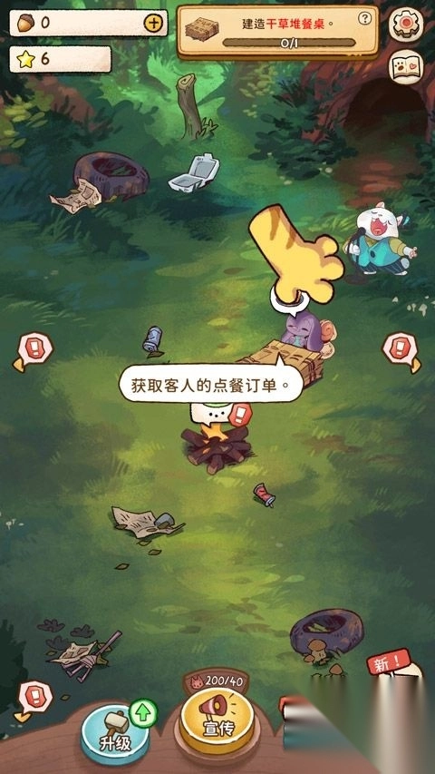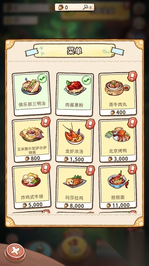 5、购买好后,会有顾客前来用餐,玩家需按照顾客要求制作,顾客用完餐后,会用松子等物品付款