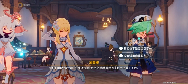 1、开启原神2025最新版本,若想畅玩原神七圣召唤,第一步要完成前置任务“骰子、猫与卡牌的战场”。