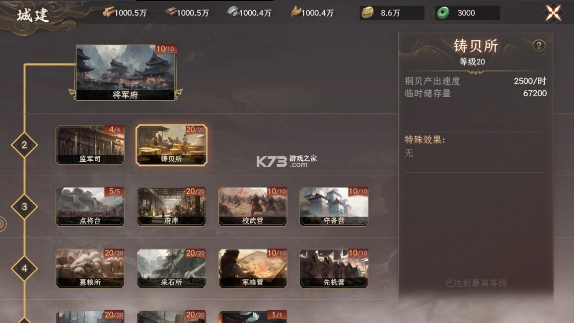 3、能够自主打造专属领地,增强资源产出与防御实力,全方位筹备战争。