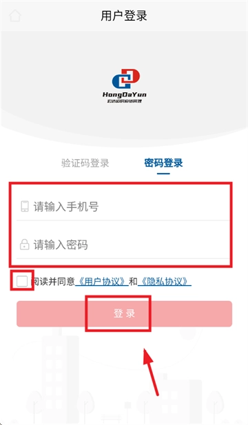 请输入手机号与密码,同时勾选“阅读并同意《用户协议》和《隐私协议》”,随后点击“登录”按钮即可完成操作。