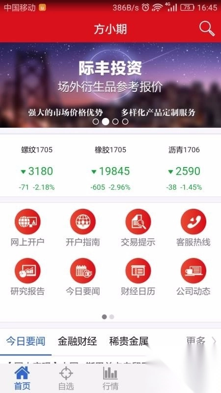 自选栏目中有着用户自己选择的所有期货信息,能够自选也能推荐;