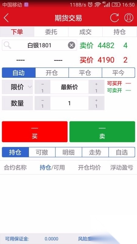 在交易中有着详细IDE下单与委托的交易,以及已经成交的交易等;