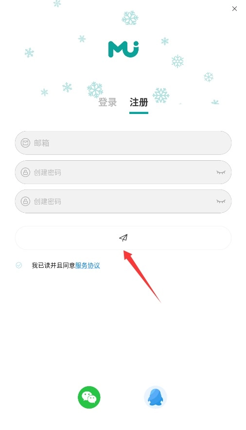 2. 填入有效的邮箱地址,设定并确认登录密码,勾选同意选项,如此便可注册成功。