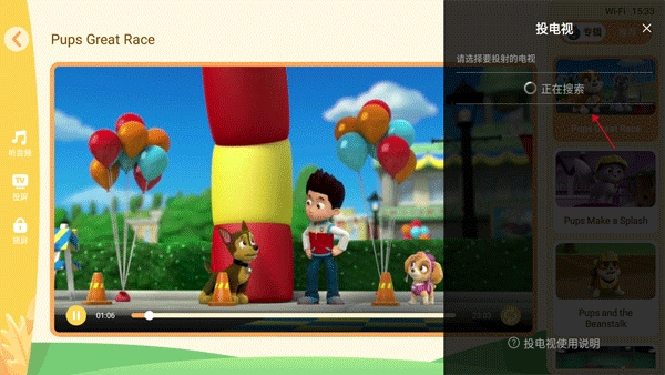 3、点击投屏功能后,右边就会开始搜索附近的智能电视或互联网盒子里。
