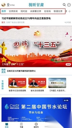 2、踏入“联播”板块,该板块内新闻栏目多样,涵盖甘肃本地新闻、时政热点、央媒报道、现场直击以及甘肃联播等各类内容。