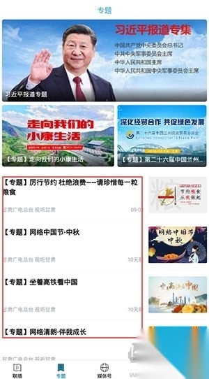 3、轻点“专题”栏目,即可浏览甘肃广电总台匠心打造的各类专题报道,其内容深度涵盖社会热点、民生话题等。