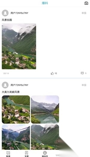 5、进入“爆料”栏目,可以看到其他用户分享的最新动态和实时信息,方便大家交流互动。