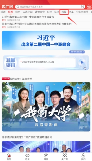 1、启动央广新闻APP后,在首页导航栏选择"科技"频道,这里每日更新前沿科技动态和行业资讯。