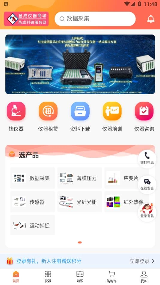 1、仪器购物与租赁:提供线上商城专区,可选购、租赁各类科研仪器,支持定制服务和下单购买。