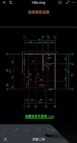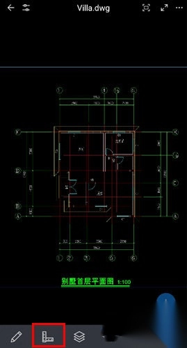 2、点击图纸下方的测量按钮。