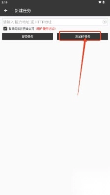 3.在输入框中粘贴链接地址,点击【添加BT任务】;