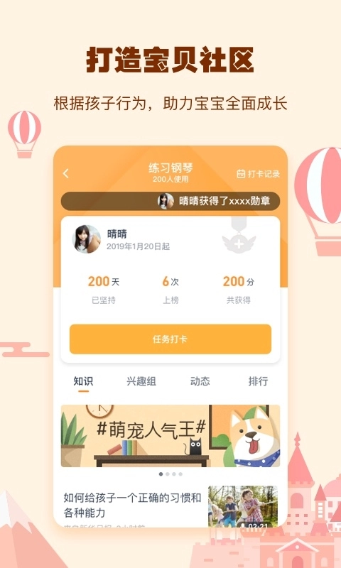 3、小约定app采用独特的游戏式管理下载模式,能助力幼儿自觉践行承诺,养成良好生活习惯。