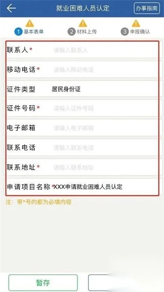 2、如需了解详情并申报,可点击办事指南,在知晓业务办理具体信息后,即可开展网上申报。请按要求填写基本信息,上传所需电子材料,完成申报确认。随后,依据系统提示,确认是否需要前往现场办理。