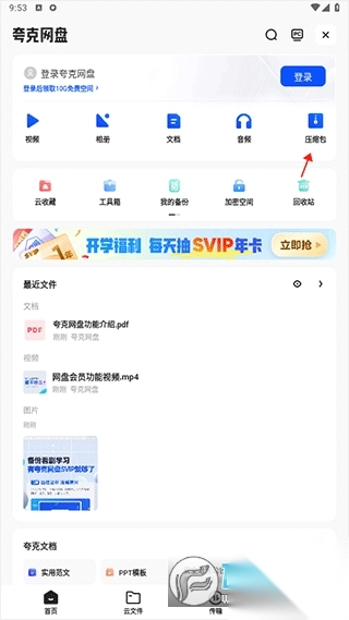 1、进入夸克页面后,点击网盘