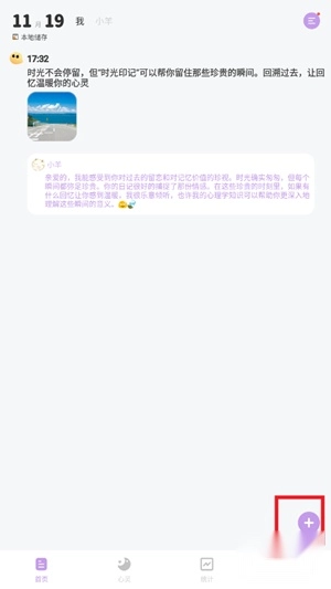 1、启动时光印记应用后,轻触界面右下角的"+"按钮开始记录。