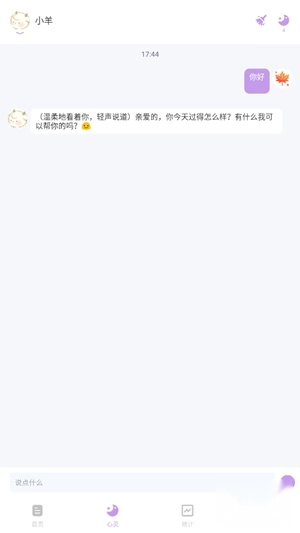 4、进入"心灵"板块,可与智能助手"小羊"进行趣味互动交流。