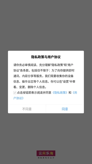 下载并安装打开云间乐淘app,阅读协议自行选择是否同意