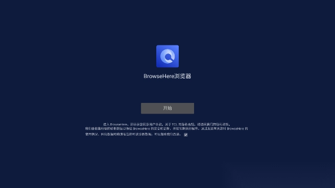1、下载安装browsehere浏览器电视版安装包,打开应用,点击开始
