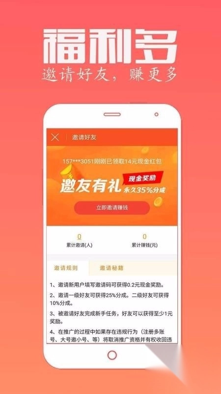 邀请的好友数量越多,所能赚到的零花钱也就越多。