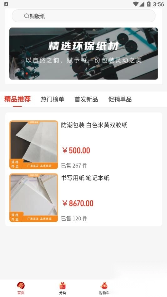 1、支持按品类分类查找商品,也可直接搜索商品名称,快速定位所需纸品包装。