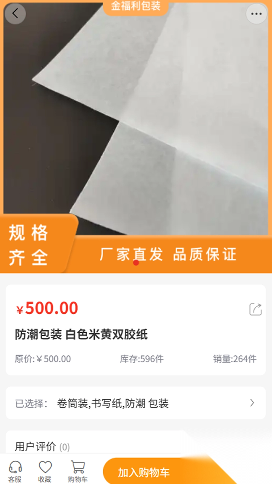2、支持一键收藏常购商品,方便再次购买;同时展示用户评价,为选购提供参考。