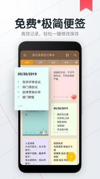 3. 借助多彩颜色对备忘录进行分类,能有效区分生活、工作等不同类型的便签。