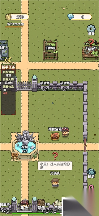 1. 首先拾取艾族长上方的宝箱,宝箱里包含1000金币、30钻石等物资,这些物资后续会派上用场。接着与艾族长对话领取任务,老玩家能够快速跳过引导步骤。