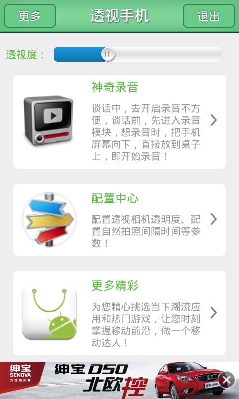 透明屏幕,也称作透视手机,能让你拥有一块透明的手机屏幕。如此一来,你即便在走路时也能畅玩诸如《天天酷跑》《我叫MT》《刀塔传奇》《时空猎人》《天天飞车》《部落战争》等热门游戏,完全不必担心会撞到物体。