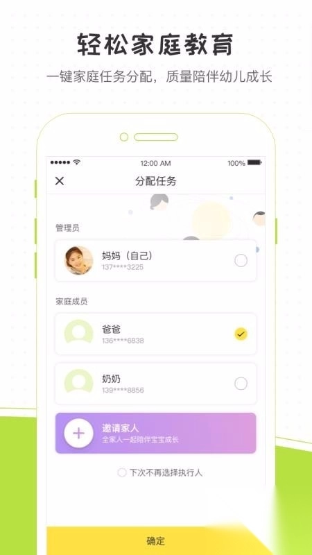 5、进入分配任务页面,即可在线邀请家人一同陪伴孩子成长。