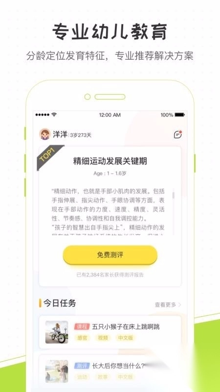 所有发展测评均免费提供,用户能在任意时间、地点对孩子展开测评。