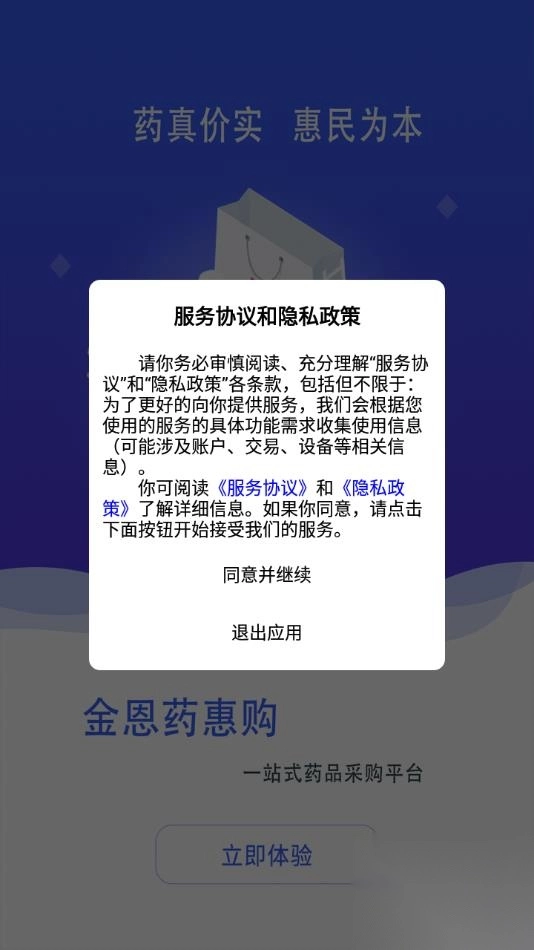 1、下载安装软件后打开,点击同意服务协议和隐私政策。