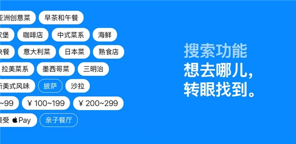 在地图app中搜索你所需的信息,既快速又轻松你可以使用过滤功能,根据菜系风味、价格区间、是否提供外卖等条件,有针对性地搜素餐厅,还可以只查看正在营业的餐厅;