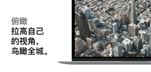 只要悬空移动iPhone或iPad,就能以鸟瞰视角体验城市;还可以通过缩放、平移、倾斜或旋转方式,用高分辨率细细观赏城市和地标,探素体验,从此再上一个高度。