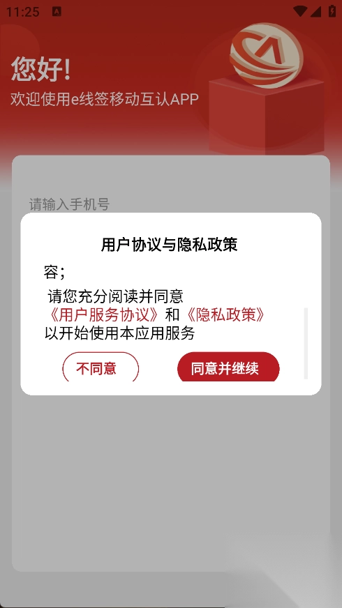 1. 下载并安装APP,点击同意并继续,即可进入登录页面;