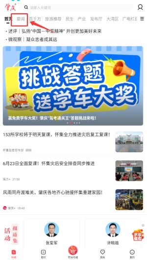 1、进入西江日报APP后,在首页上方导航栏中找到并点击"要闻"分类选项。