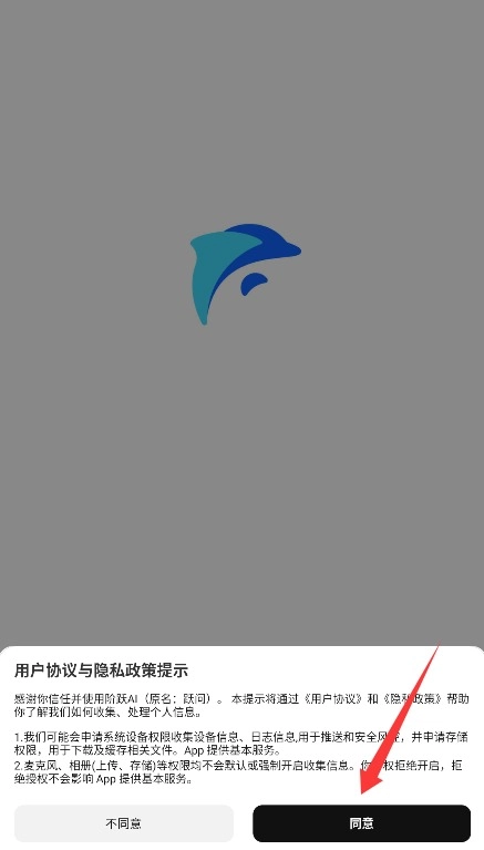 1. 开启阶跃AI应用,认真研读用户协议及隐私政策,随后点击同意按钮进入。