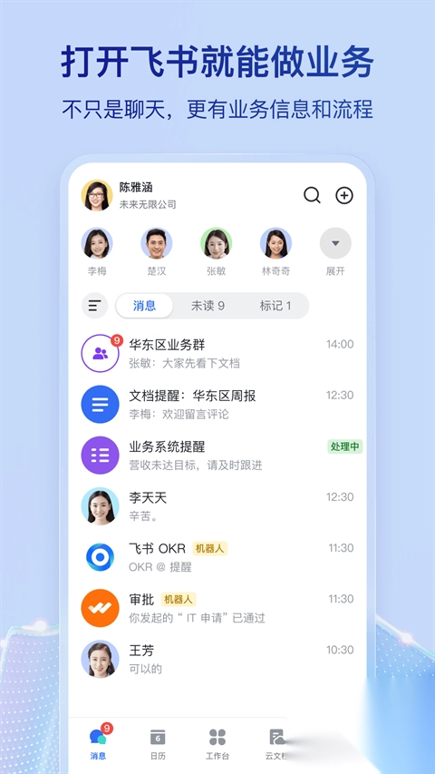 通过应用内加急、短信以及电话通知等多种加急方式,让消息能够快速且有效地触达接收人。它不单单是一款即时通讯工具,还融合了在线协作文档与智能共享日历功能,助力企业提高工作效率,削减生产成本与管理成本,朝着更高效、更协同、更安全的智能化公司迈进。